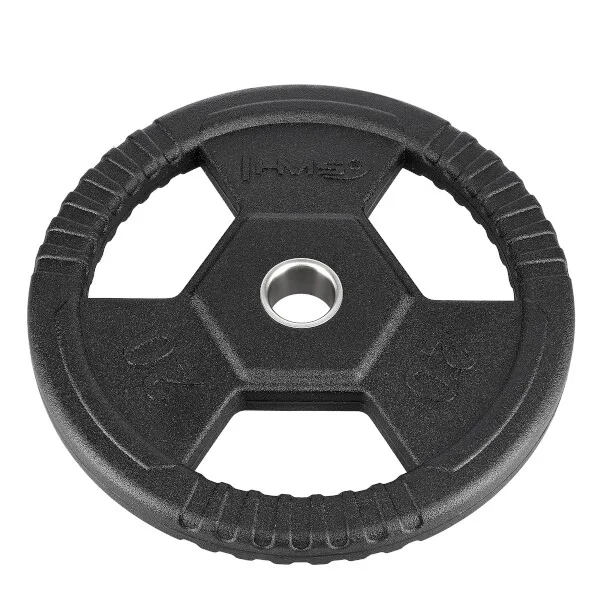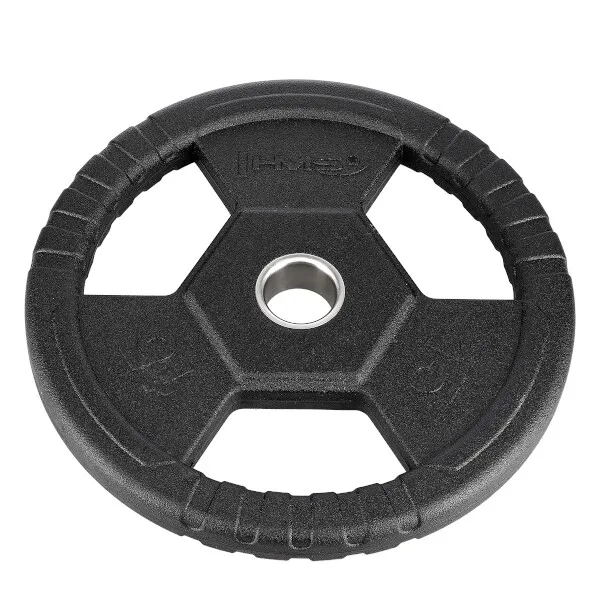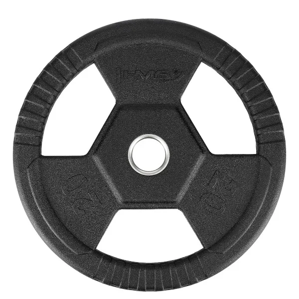 Olympijský kotouč HMS TOH je vhodný pro vzpěračský a crossfit trénink. Kotouč je určen pro olympijské osy s průměrem trnů 50 mm. Kotouč je vyroben z oceli pokryté tvrdou gumou, která chrání jak talíř, tak podlahu před poškozením. Hmotnosti od 5 kilogramů jsou vybaveny praktickými madly, které usnadňují manipulaci s kotoučem při nakládání a vykládnání z osy, ale také jsou ideální ke cvikům se samostatným kotoučem.