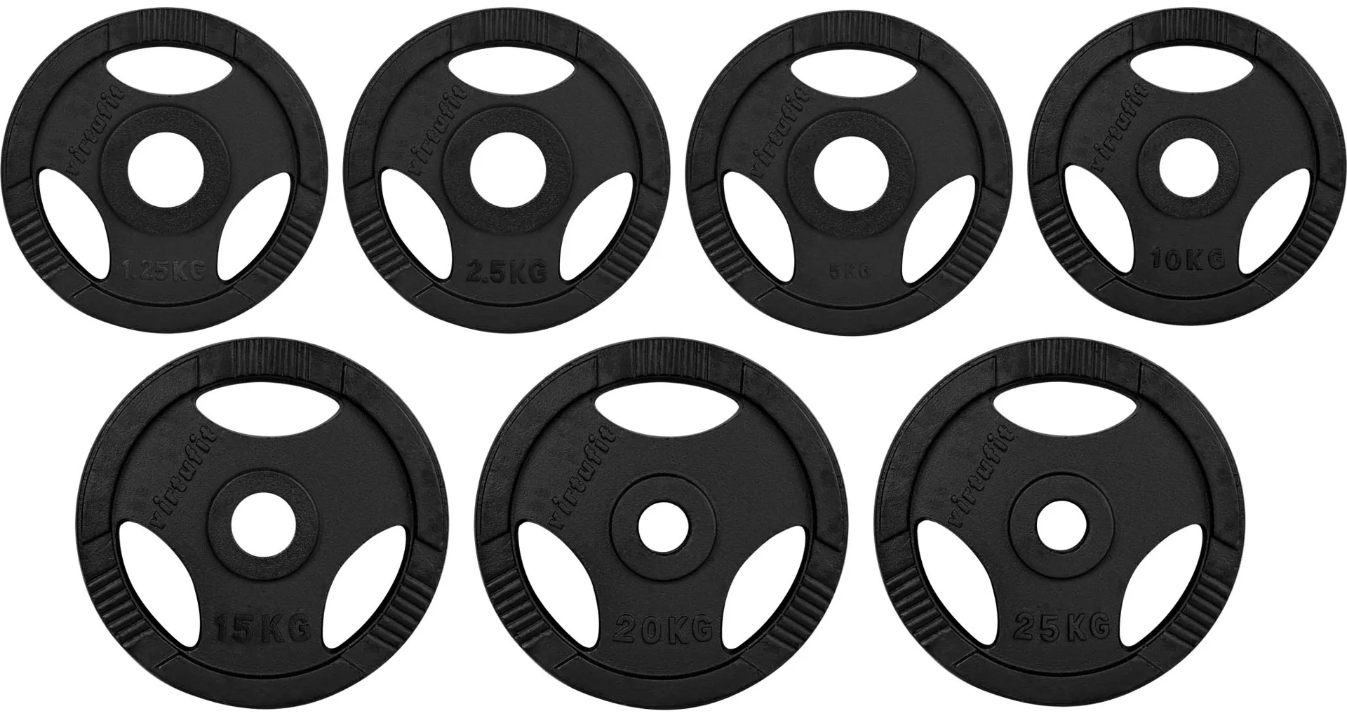 Olympijské litinové kotouče VIRTUFIT jsou vhodné pro všechny typy činek s průměrem 50 mm. Kotouče mají kvalitní lakovanou povrchovou úpravu se zvýšenou odolností proti opotřebení a zvýšenou trvanlivostí. Kotouče jsou určené pro komerční i domácí využití. Ergonomický úchop umožňuje bezpečnější a snadnější manipulaci.