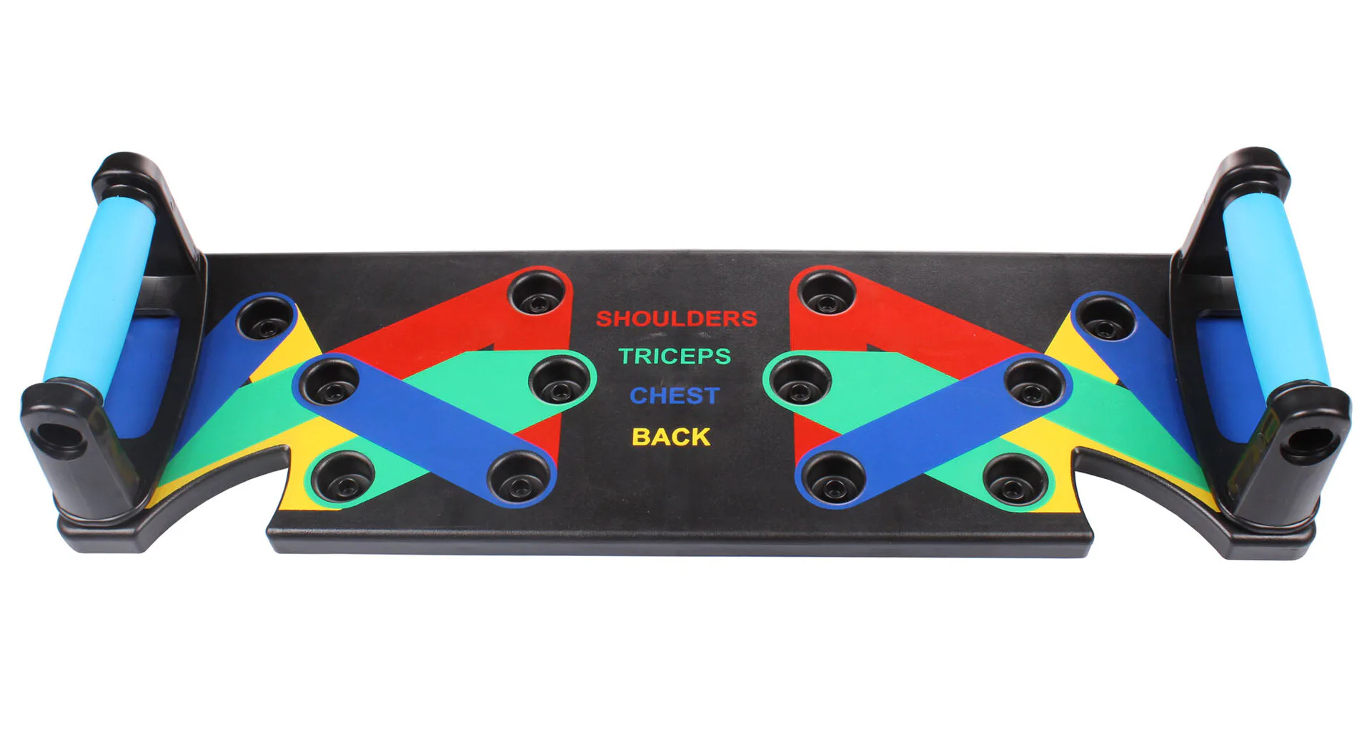 Deska nabízí 10 nastavení poloh pro cvičení: 2 na ramena (červená barva), 3 na tricepsy (zelená barva), 3 na prsa (modrá barva) a 2 na záda (žlutá barva). Díky tomu je multifunkční deska Excellent ideální doplněk každé domácí tělocvičny či pro školy.
