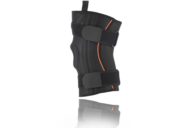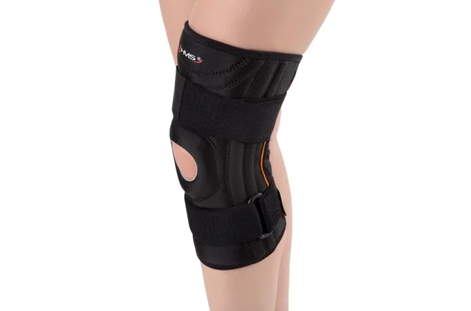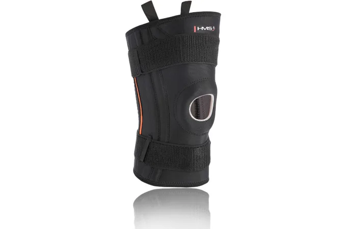 Ortéza HMS KO1655 je vyrobena z kombinace neoprenu, polyesteru a nylonu v úpravě airprene. Výsledný materiál je elastický, roztažitelný do všech směrů a pomocí systému suchých zipů je možné stabilizátor nastavit přesně podle Vašich potřeb. Po stranách jsou do konstrukce všity výztuhy, které zamezují pohybu kolene do stran a vzad. V přední části je kapsa na zip, ve které se nachází silikonový kroužek pro stabilizaci čéšky. Kroužek lze snadno vyjmout a záleží pouze na Vás, jak hodně potřebujete koleno stabilizovat.