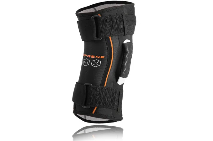 Ortéza HMS KO1655 je vyrobena z kombinace neoprenu, polyesteru a nylonu v úpravě airprene. Výsledný materiál je elastický, roztažitelný do všech směrů a pomocí systému suchých zipů je možné stabilizátor nastavit přesně podle Vašich potřeb. Na stranách se nachází ocelové výztuhy, které zamezují pohybu kolene do stran a vzad. V přední části je kapsa na zip, ve které se nachází silikonový kroužek pro stabilizaci čéšky. Kroužek lze snadno vyjmout a záleží pouze na Vás, jak hodně potřebujete koleno stabilizovat.