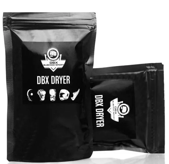 DBX Dryer je černá kapsa s bílou, vyjímatelnou vložkou naplněnou silikagelem. Silikagel jsou přírodní, antibakteriální a bezzápachové krystalky, které pohlcují vlhkost a zápach. Jedno balení DBX Dryer obsahuje 2 sáčky o rozměru 15 x 10 cm.