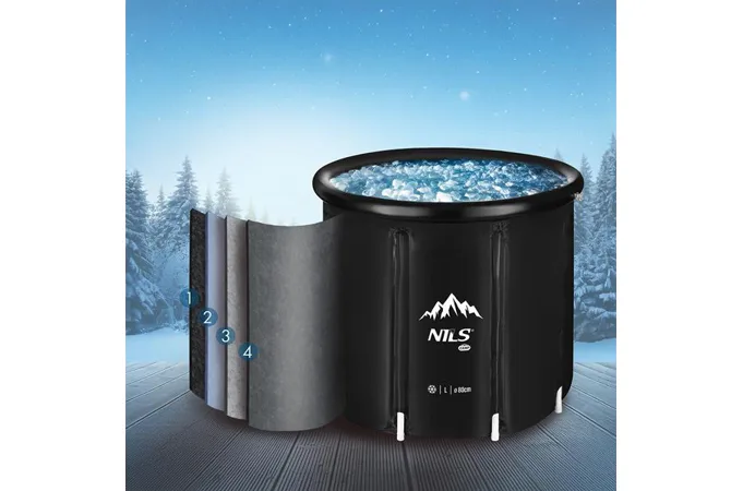 Káď na otužování je vyrobena z odolného PVC materiálu zesíleného polyesterem a izolační pěnou, což zajišťuje odolnost vůči nízkým teplotám a dlouhou životnost produktu. Její lehká a přenosná konstrukce umožňuje snadné skladování a přepravu.