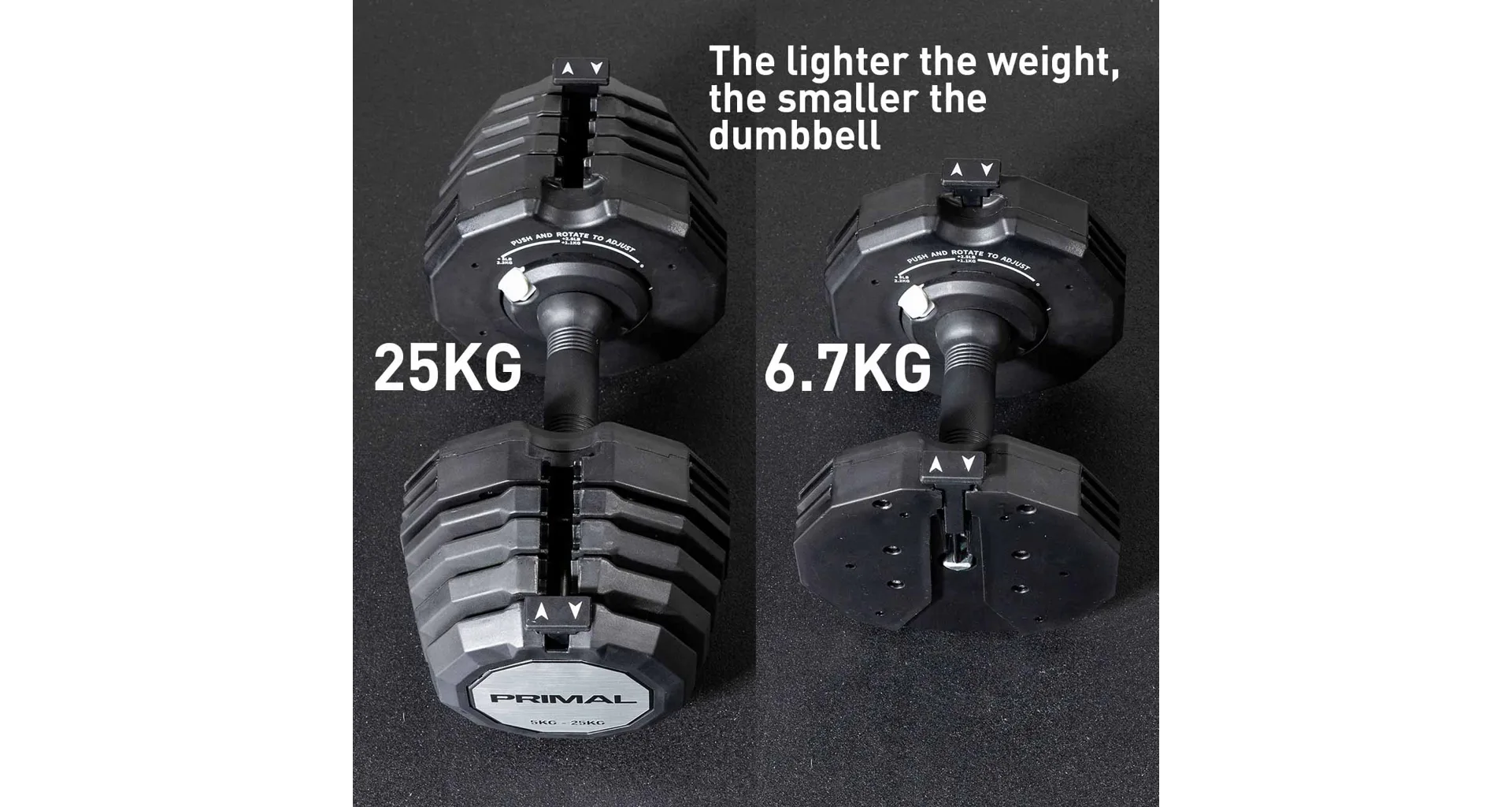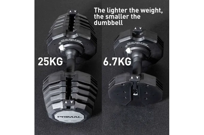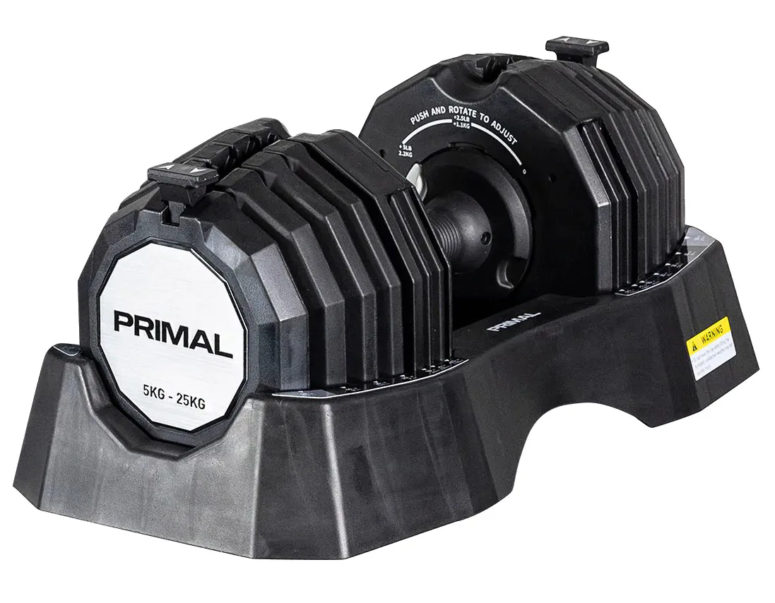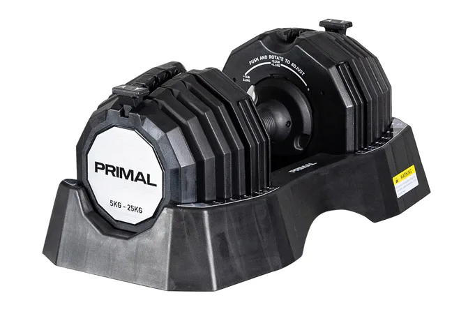 Jednoruční nakládací činky PRIMAL STRENGTH s praktickým řešením úpravy zátěže. Pomocí praktického nakládacího/vykládacího systému nebyla změna hmotnosti nikdy snazší. Vámi požadovanou váhu si můžete velmi jednoduše změnit pomocí posuvníku, kterým vyberete požadovanou hmotnost. K dalšímu přesnějšímu zvýšení, nebo snížení váhy slouží otočný mechanismus.