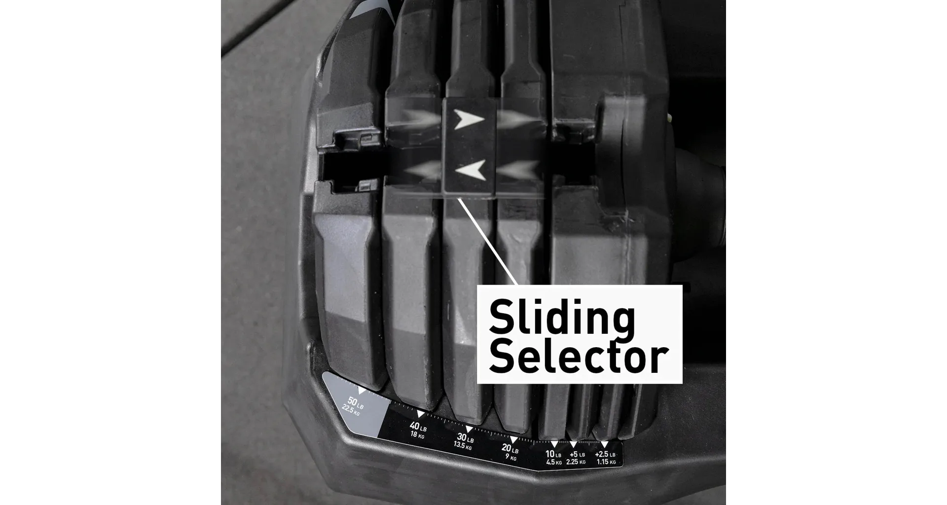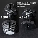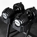 Tento set obsahuje činku s volitelnou hmotností od 4,5 do 25 kg. Bezpečný trénink a snadnou manipulaci zajišťuje patentovaný blokovací mechanismus. Samotná hmotnost lze upravit pouze v okamžiku kdy je činky uložena v základním stojanu, který je samozřejmě součástí balení. Na stojanu jsou vyznačené jednotlivé váhy, aby bylo vše maximálně přehledné.
