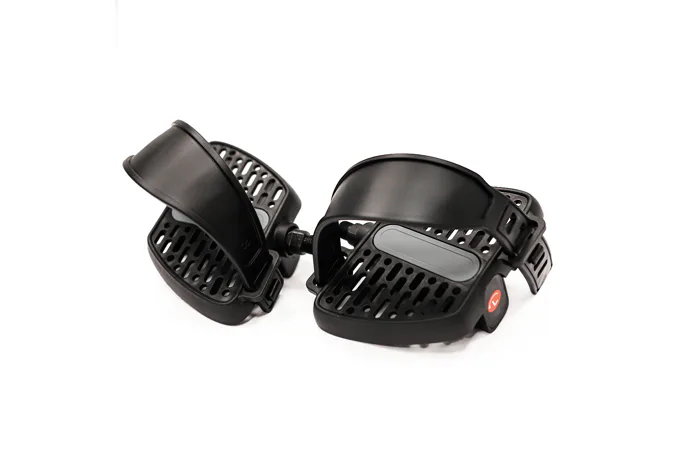 Sada kvalitních pedálů s klipsnou od značky TRINFIT je určená pro rotopedy a ergometry různých značek. Pedály jsou osově vyvážené, snadno a pohodlně se do nich tedy nastupuje, z horní strany jsou opatřeny protiskluzovým profilem, nárt obepíná řemínek z měkčených plastů, jeho délku lze nastavit dle individuálních potřeb.