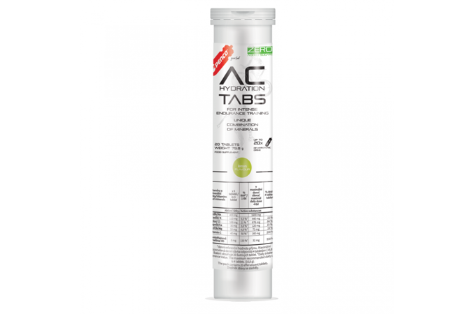 Při tréninku trvajícím déle než hodinu nebo sportovní činnosti vyšší intenzity se potem ztrácí nejen voda, ale i minerály. Podle dostupných údajů největší ztráty elektrolytů představují sodík, draslík a chloridy. V 1 litru potu se průměrně vyloučí kolem 1 g sodíku. Ztráty vápníku a hořčíku jsou výrazně nižší. Rovnováha elektrolytů má vliv nejen na zdraví, ale i na výkonnost. Denní dávka Penco AC Hydration Tabs 4 tbl = 2 litry nápoje obsahuje 1,6 g sodíku, 0,4 g draslíku a je zdrojem, vápníku a hořčíku, které přispívají k normální činnosti svalů. Draslík je důležitý pro normální činnost nervové soustavy, podporuje činnost svalů a přispívá k udržení normálního krevního tlaku. Je obohacen vitamínem C a kyselinou pantothenovou pro snížení míry únavy a vyčerpání. Podle délky a intenzity sportovní činnosti je vhodné používat Penco AC Hydration Tabs během výkonu v menších dávkách v intervalech 10-15 min.. Lze také kombinovat s iontovými nápoji Penco Mineral Drink nebo Penco Energy Drink, které navíc dodají energii.