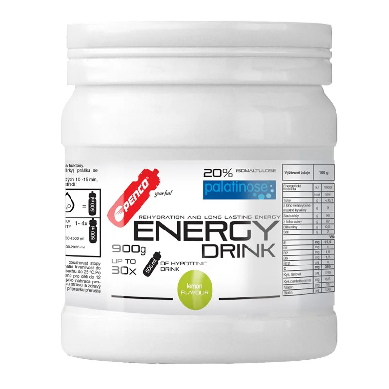 Zdrojem energie jsou jednoduché cukry (glukosa a sacharosa), složené sacharidy (maltodextriny) a unikátní disacharid isomaltulosa (PALATINOSE TM ) pro postupné uvolňování energie. V receptuře Penco© ENERGY DRINKU je 20% PALATINOSY TM . Sacharid Isomaltulosa byla objevena v roce 1957. Přirozeně se vyskytuje v medu a cukrové třtině. Vyrábí se ze sacharózy enzymatickou přeměnou 1,2- glykosidické vazby mezi glukózou a fruktózou na vazbu 1,6. Díky této rozdílné vazbě je isomaltulosa stabilnější než sacharosa, metabolizuje pomaleji bez výrazného zvýšení hladiny glukózy v krvi. Isomaltulosa je první pomalu stravitelný cukr, který poskytuje svalům a mozku stejné množství energie (4 kcal/g) jako sacharosa nebo glukosa, ale v delším časovém intervalu . Zatímco běžný cukr nebo glukosu tělo využije velmi rychle a hladina krevního cukru klesne na bazální hladinu asi po 60 min, sacharid isomaltulosa je metabolizována mnohem pomaleji a její hladina v krvi je plně vyčerpána až po 2 hodinách. PALATINOSA TM se vyznačuje nízkým glykemickým indexem (GI) a nízkou inzulínovou odezvou, je šetrná k zubům a je vhodná i pro diabetiky.