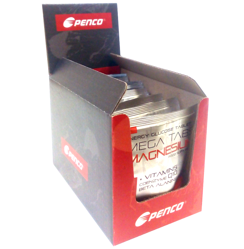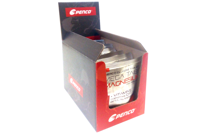 Penco® Mega Tabs Magnesium jsou energetické glukózové tablety s hořčíkem, beta-alaninem a antioxidačním systémem proti křečím a oxidačnímu stresu. V balení je 24 tablet po 2500 mg s vyšším obsahem magnesia.