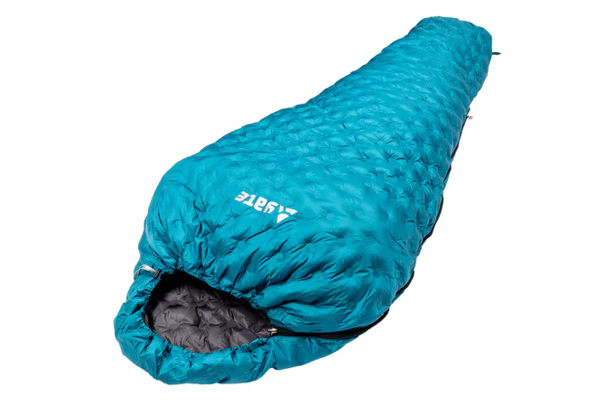 Péřový spací pytel YATE ANASO 500 pravostranný modrý