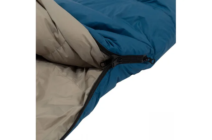 Zapínání: spacák je vybaven značkovým zipem YKK se speciálním plastovým chráničem, který zabraňuje vniknutí látky do jezdce a samovolnému rozepínání. U hlavy je zip ještě zajištěn klopou na suchý zip, která zamezuje samovolnému otevření zipu.