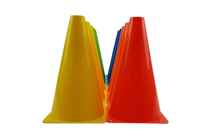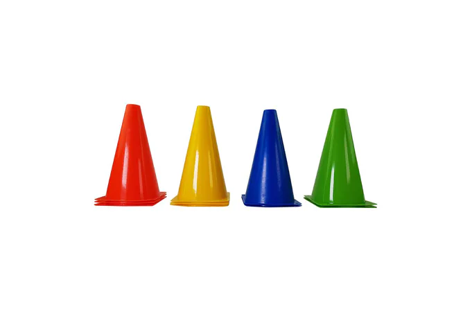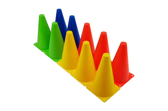 Plastové tréninkové kužely TUNTURI - 10 ks jsou vhodnou pomůckou pro označení stanovišť či terénu během her nebo tréninků. Tyto kužely tak nejvíce uvítají trenéři, ale i rekreační sportovci. Jejich využití je jak v tréninku rychlosti, u práce s míčem, ale také je můžete využít při dětských hrách nebo kruhovém tréninku. Díky zdířkám v základnách kuželů je lze připevnit k zemi pomocí kolíků.