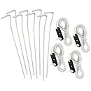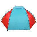 Jednoplášťový stan je vyroben z polyesteru, potažen PU zátěrem s voděodolnou podlahou z PE. Po snadném sestavení stanu, kdy seskládáte tři odlišně dlouhé konstrukční polykarbonátové tyče do sebe, protáhnete je příslušnými otvory pláště a získáte prostor s rozměry 270 x 120 x 120 cm. Poté stan umístíte, připevníte napevno k zemi příslušnými kolíky, vypnete napínacími lanky a skvělé zázemí pro vaše plážové aktivity je hotové.