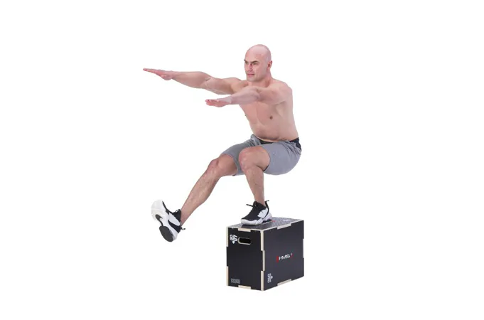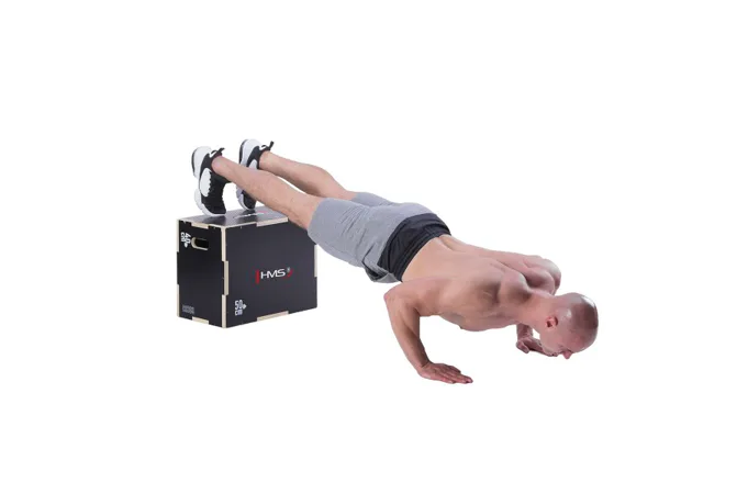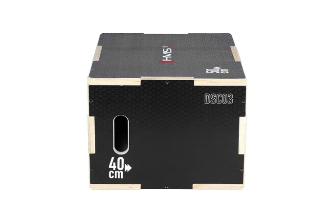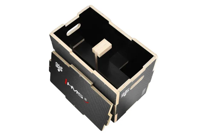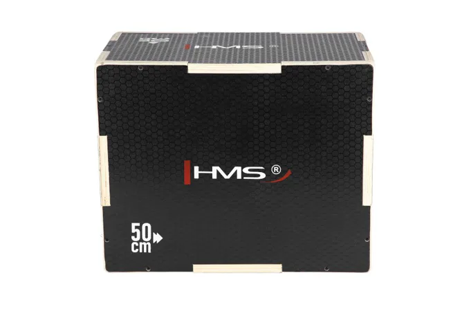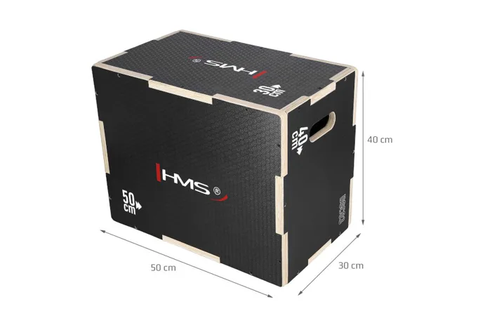 Plyometrický box HMS DSC03 je bedna určena pro kondiční trénink. Box je nedílnou součástí každého crossfitového centra, pomůckou profesionálních sportovců nebo i atletů. Vyroben je z 18 mm překližky a má rozměry 50 x 40 x 30 cm.Jednotlivé stěny mají výkroje a při skládání skříně do sebe zapadají jako "puzzle". Výřezy usnadňují montáž a napomáhají lepšímu rozložení zátěže při doskoku, tím se prodlužuje životnost skříně.Povrch boxu je potažen speciální vrstvou, která zamezuje sklouznutí boty a také lze snadno očistit. Na dvou protilehlých stěnách se nachází otvory pro snadné přenášení.
