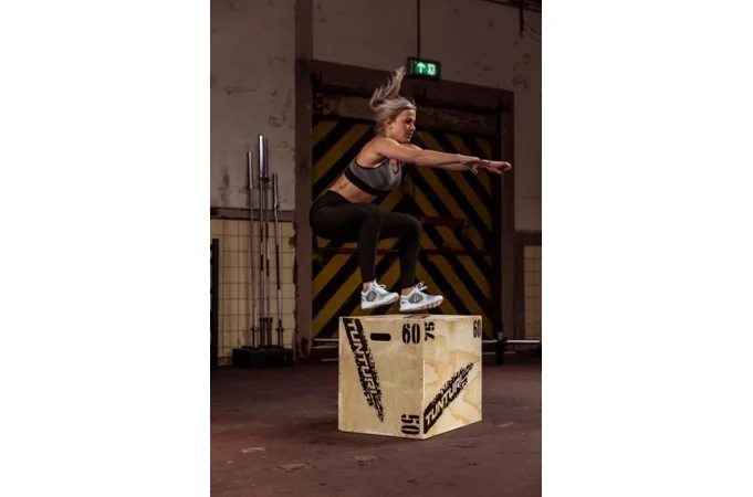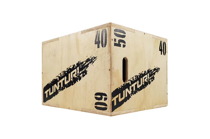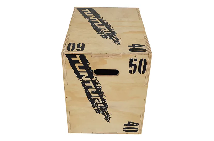 Plyometrickou bednu dřevěnou TUNTURI Plyo Box lze využívat při tréninku ze všech stran. Díky speciálnímu vystužení má tato bedna garantovanou životnost i připravidelném tréninku a neměla by tak chybět v žádné crossfitové těločvičně či funkční zóně velkých fitness center.