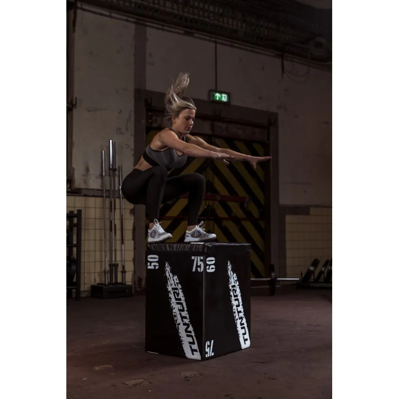 Vnitřní materiál je ze dřeva, které je obaleno silným krytem EVA (tvrdost až 1000D). Díky speciálnímu vystužení má tato bedna TUNTURI Plyo Box Soft garantovanou životnost i připravidelném tréninku a neměla by tak chybět v žádné crossfitové těločvičně či funkční zóně velkých fitness center. Lze využívat při tréninku všechny strany bedny. Bedna je navíc krytá speciálním měkkým povrchem z husté pěny pro odlehčení kloubů a snižuje zátěž na kotníky, kolena a kyčle + jako ochrana proti poranění holení při skocích!
