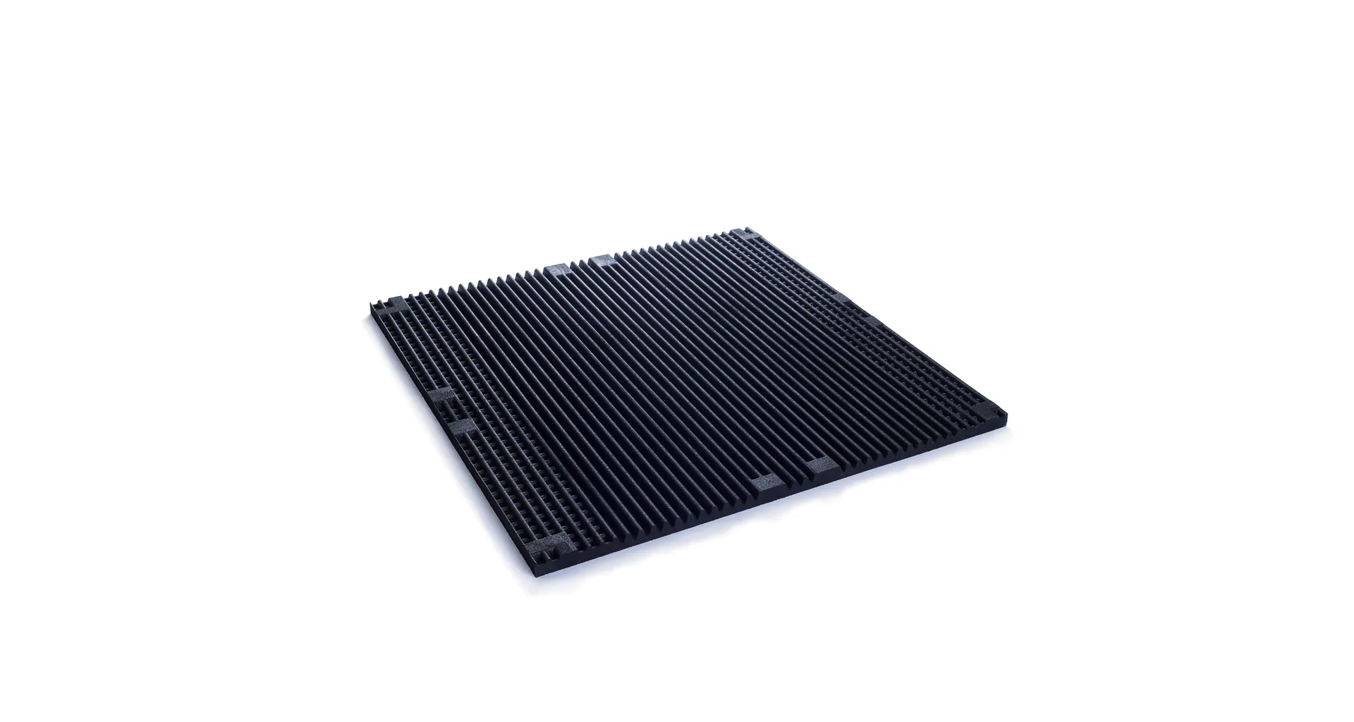 Snadná montáž podlahy bez nutnosti celoplošného lepení k podkladu díky vysoké váze desek. Jednotlivé desky mají rozměr 100 x 100 cm a díky velmi přesnému zpracování je lze snadno přikládat k sobě na těsno. Vysoká objemová hmotnost, snadná údržba, tloušťka 30 mm. Pokládku podlahy můžete provést svépomocí, případně umíme zajistit její montáž na míru. Díky zdravotní nezávadnosti lze využít i na dětských hřištích.