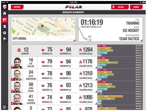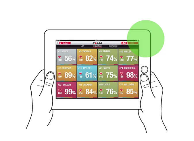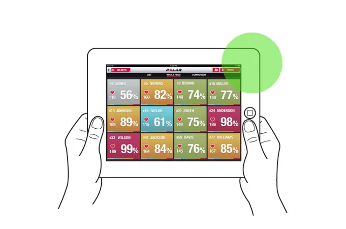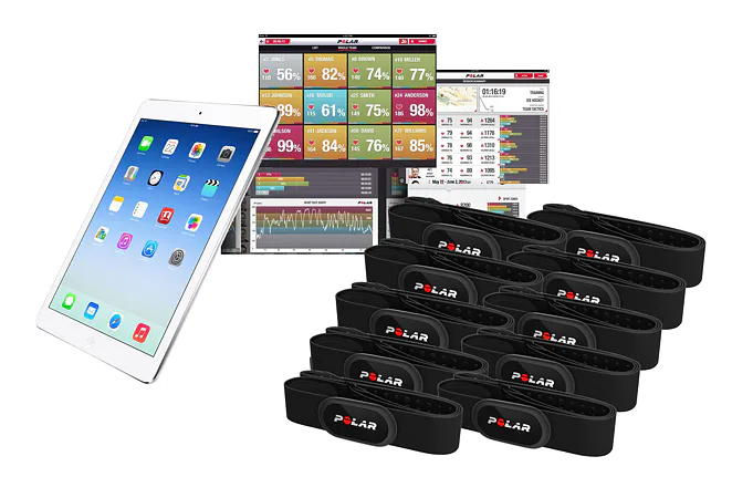 Sada pro skupinvé měření tepové frekvence POLAR TEAM COACH BASIC, je vhodná pro trenérskou a podobnou činnost, tam kde je nutné měření aktuální tepové frekvence více jedinců současně, je tedy ideální pro sportovní aktivity jako jsou hokej, volejbal, tenis, …. .Aplikace instalovaná do mobilního zařízení (musí se jednat o vybrané typy iPadu, iOS min. 8), umožňuje aktuální sledování každého přihlášeného jedince k aplikaci. Trenér tak může sledovat do jaké míry každý z teamu pracuje. Tyto informace poslouží pro další možnosti vedení tréninku.