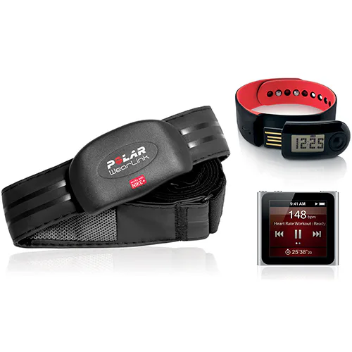 Polar Wearlink+ Nike+ je hrudní vysílač, který vznikl jako doplněk pro běžecký set Nike+. Nike+ je společný produkt značek Nike a Apple (iPod), zjednodušeně lze říci, že společnosti vyvinuly čip, který je integrovaný v samotné obuvi, nebo jej lze k obuvi připevnit. Čip funguje na podobném principu jako běžný krokoměr, údaje však bezdrátově přenáší do "iPodu". Dalším prvkem který lze k setu připojit je právě Polar WearLink+ Transmitter Nike+. Tento hrudní pás snímá tepovou frekvenci a údaje o ni předává bezdrátově do iPodu. !!! V současné době splňují podmínky komunikace pouze modely iPod nano 5. a 6. generace. Případně Nike+Sportband a Nike+SportWatch GPS. Elektrody jsou zabudovány v elestickém textilním popruhu. Výhodou WearLinku je bezesporu možnost výměny baterie, pás je textilní a podstatně komfortnější než základní model Polar T31C. Snímání tepové frekvence je také přesnější.