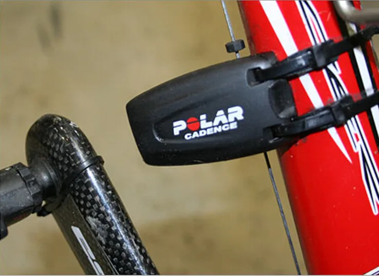 Polar CS Cadence je snímač pro měření frekvence šlapání, doplněk pro modely CS100, CS200, CS300, CS400, montuje se na pevnou část kola - např. sedlovou trubku a na kliku se nalepí magnet, který je součástí dodávky.