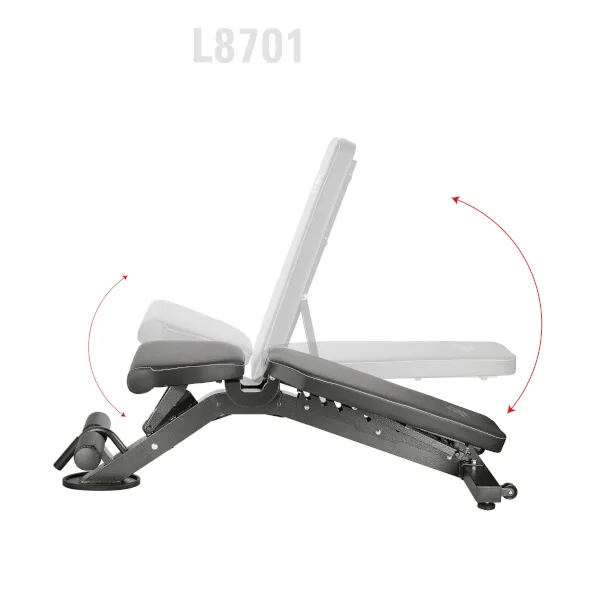 HMS L8701 je variabilní, volně stojící lavice určená pro trénink s činkami a obouruční osou. Lze ji také použít jako doplněk ke stojanu, nebo například k multipressu.