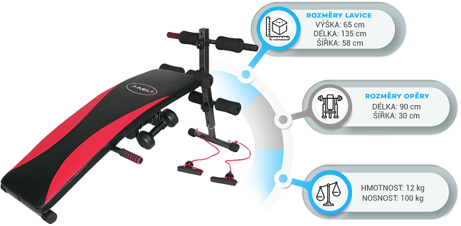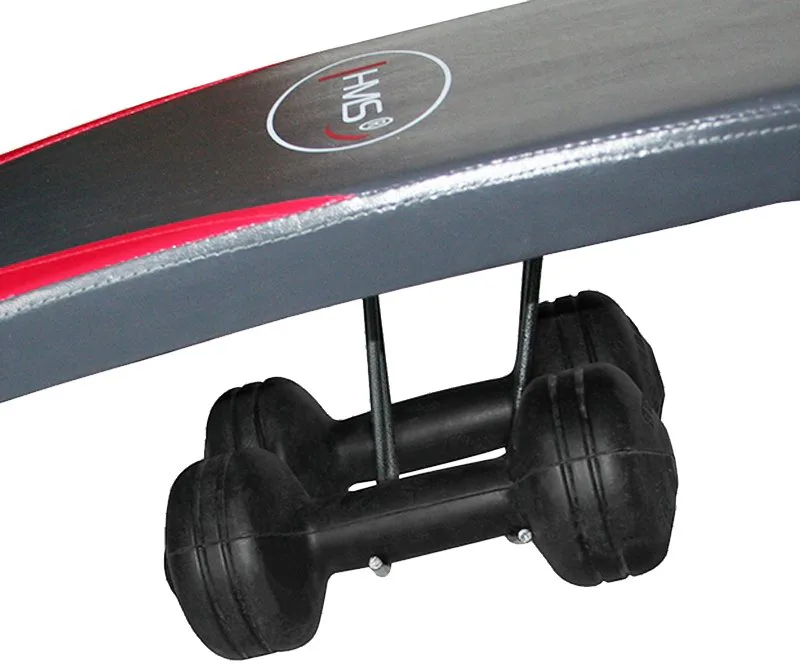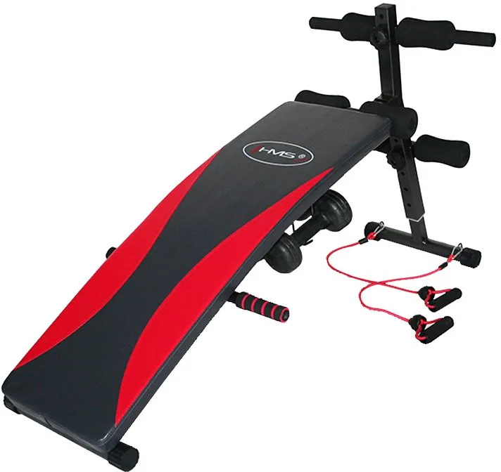 Šikmá lavička HMS L 8355 se závažím určena pro domácí použití. Je určena k tréninku břišních svalů, boků a páteře. Díky vinylovým činkám může uživatel provádět trénink horní poloviny těla. Kvalitně provedená posilovací lavice. Poskytuje vynikající stabilitu a s velkými možnostmi nastavení (výšky a úhlu), bude mít průměrný cvičenec spoustu možností v tréninku. L8355 je vybaven protiskluzovými úchyty pro pohodlí a bezpečnost při cvičení.