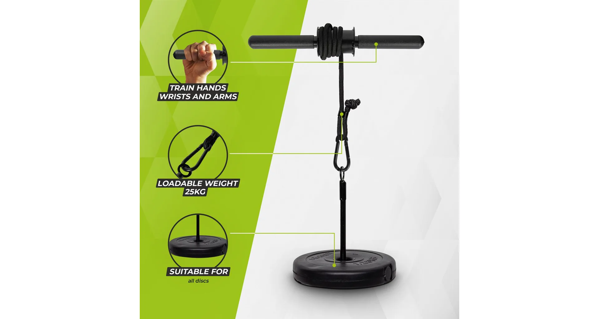 Posilovač paží VirtuFit Wrist Roller je nástroj pro trénování předloktí. Je to ideální společník pro nenáročné posilovací tréninky zápěstí. Stačí zavěsit požadovaná závaží na karabinu, která je umístěna na šňůře pro vysoké zatížení. Chcete-li trénovat, naviňte kabel nahoru a dolů předloktím a zápěstím.