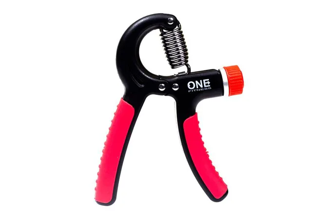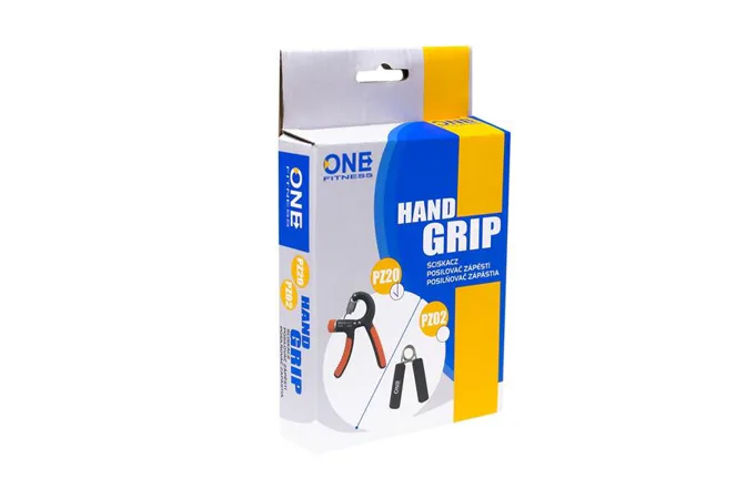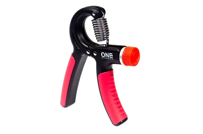 Posilovač zápěstí s tvarovanou rukojetí a nastavitelným odporem stisku. Účelem je posílení zápěstí a svalů předloktí.