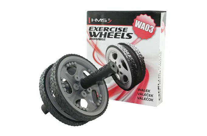Posilovací kolečko - dvojité HMS WA03 sloužící k posílení svalů břicha, zad, paží, ramen, hrudníku. Bezpečnému cvičení napomáhá také protiskluzový povrch kolečka.