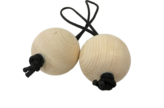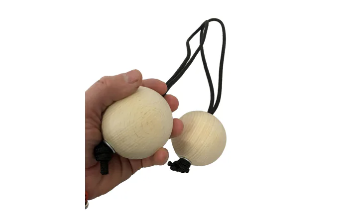 Dřevěné koule jsou dodávány v sadě – 2 ks se závěsem, který je řešen formou lana o zatížení v tahu více než 200 kg, zakončené podložkou pro ochranu proti vypadnutí lana z koule. Jejich zavěšení je velice jednoduché – stačí provléci přes hrazdu, tyč, větev, zkrátka kdekoli, kde se právě nacházíte a je to možné. Zároven lze provléci dalšími cvičebními pomůckami, jako jsou kettlebelly a další závaží, čímž docílíte opět většího zatížení na svaly na ruce, než při klasickém úchopu ketllebellu či činky.