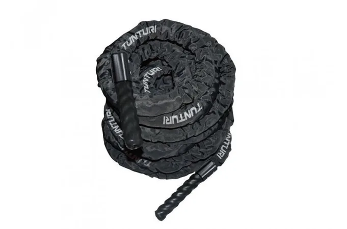 Posilovací lano Battle Rope TUNTURI Pro v obalu je skvělý doplněk na rozvoj explozivní síly, ale i vytrvalosti. Díky typickému pohybu se dokonale zpevní celé paže, ale i ramena, část prsních svalů a horní část zad. Posilovací lana lze používat jako venkovní (outdoor) i halovou (indoor) pomůcku. Posilovací lano Battle Rope TUNTURI je vyrobeno z odolného polyesteru, který je v nylonovém návleku (obalu). Úchopy lana jsou tvořeny z PVC. Tyto materiály zajišťují dlouhou životnost lana, stejně jako vysokou odolnost. Využití posilovacích lan najdeme v hodně sportech a sportovních disciplínách, velmi rozšířené jsou například v bojových sportech, ve kterých jde nejen o výbušnost a vytrvalost, ale i v prostřed crossfitu.