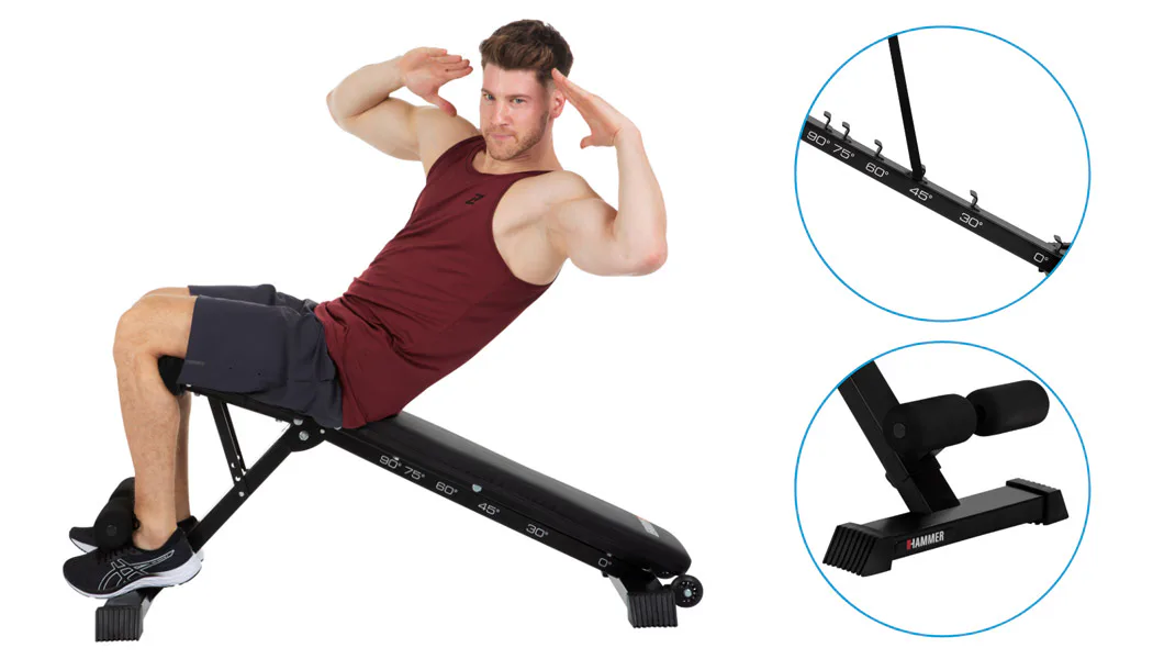 Posilovací lavice HAMMER Force 2.0 může mít zatížení až 200 kg, a je proto ideální i pro pokročilé silové sportovce.