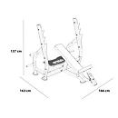 Lavice BH Fitness L820 se rozkládají na půdorysu o rozměrech (d x š x v) 163 cm, 166 cm a 137 cm, nezaberou vám tedy moc prostoru a stále zůstane dostatek místa i na další stroje.