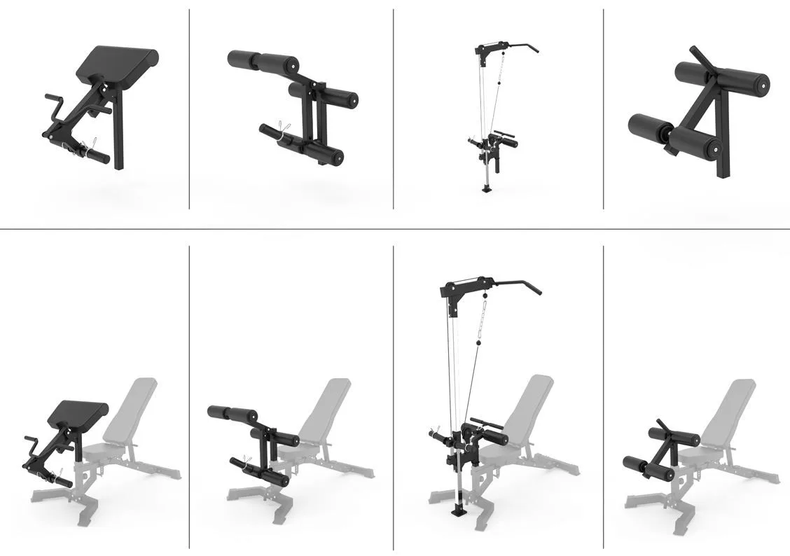 S posilovací lavicí TRINFIT Bench L5 Pro, můžete mít skoro celou posilovnu na prostoru do 2 m². Díky otvoru ve přední části lavičky a adaptérům k dokoupení, jako jsou: TRINFIT kopač pro L5 Pro, TRINFIT biceps pro L5 Pro, TRINFIT doraz břicho pro L5 Pro a TRINFIT kladka pro L5 Pro s výškou od země 65 cm. S kopačem procvičíte přední i zadní část stehen (kvadricepsy a hamstringy), s bicepsovým adaptérem procvičíte izolovaně biceps v různých úhlech, s dorazem pro břicho procvičíte své břišní svaly a s kladkou procvičíte především vrchní část těla.