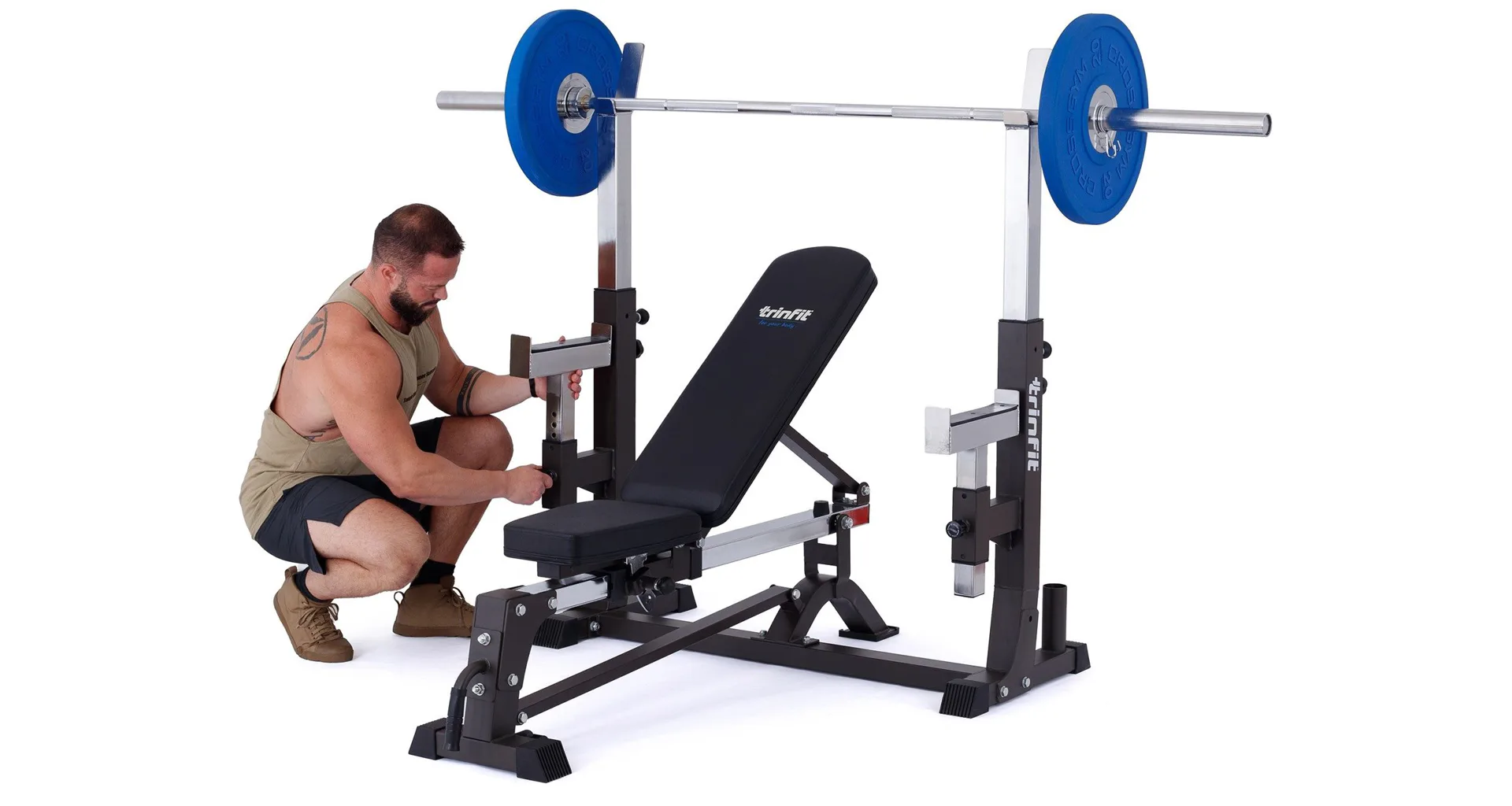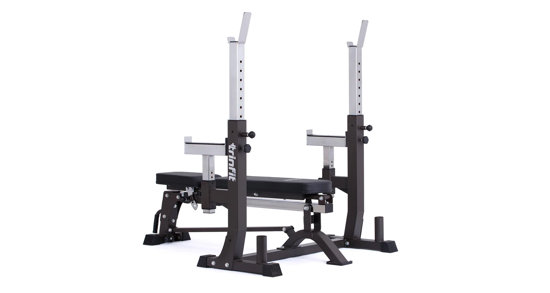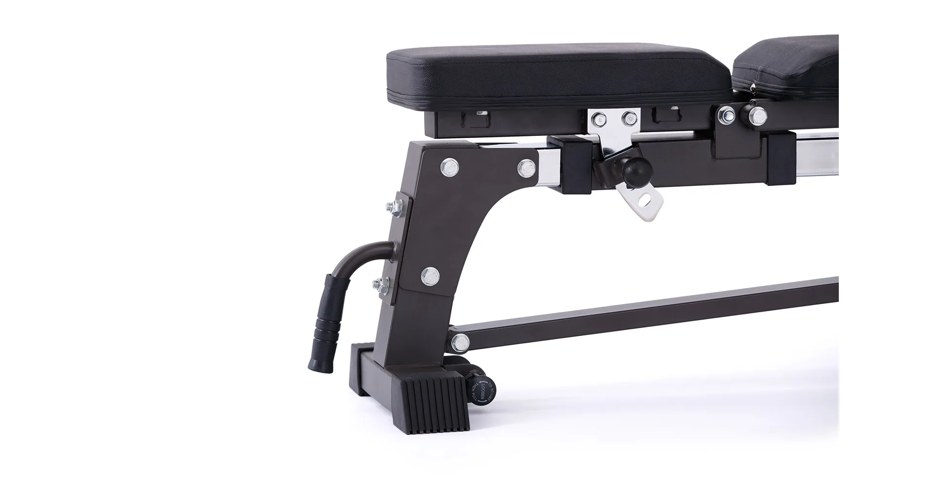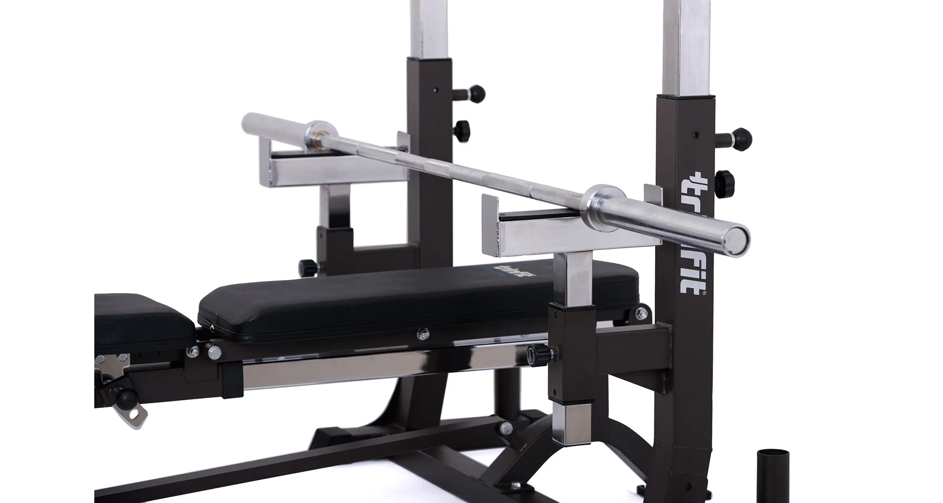 TRINFIT F7 Pro Benchpress má unikátní mechanismus nastavení lavice. Ta je totiž umístěná na kolejnici, která je opatřena 9 otvory, pro 9 poloh lavice. Lavici lze tedy položit do úplné roviny (pro benchpress), ale i do sedu (pro tlaky na ramena s velkou činkou). Pokud chcete procvičit prsa z úhlu, pak vám bude pravděpodobně vyhovovat poloha lavice něco mezi sedem a lehem.