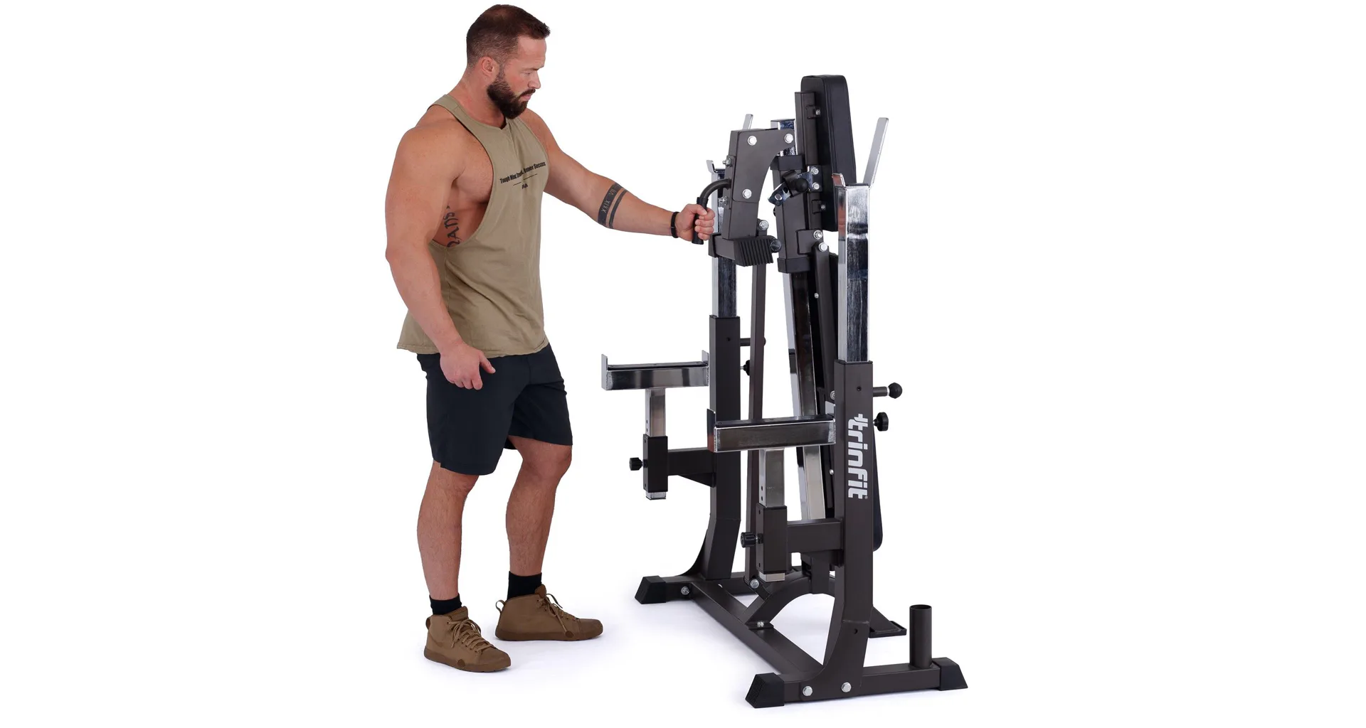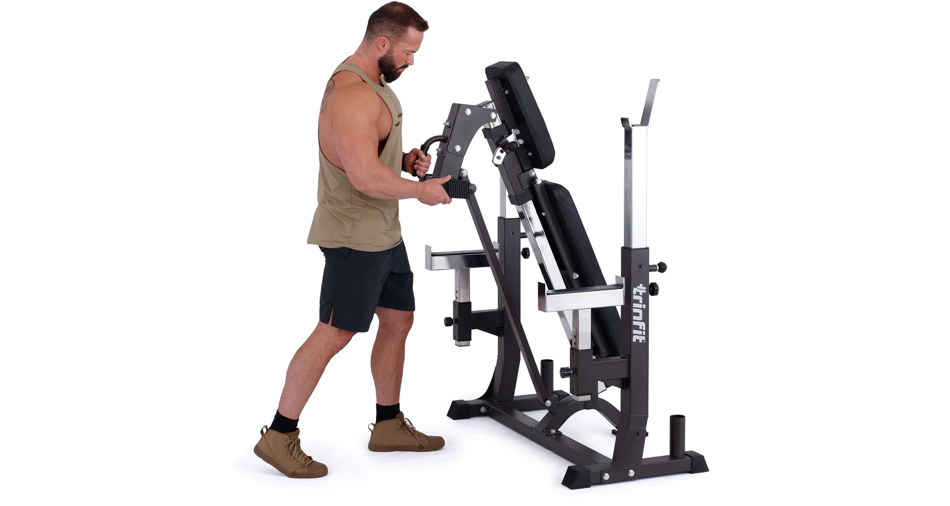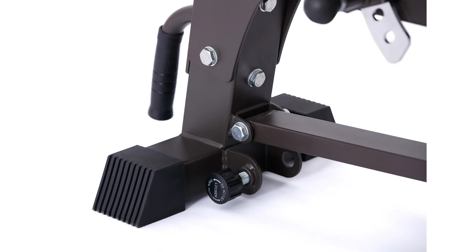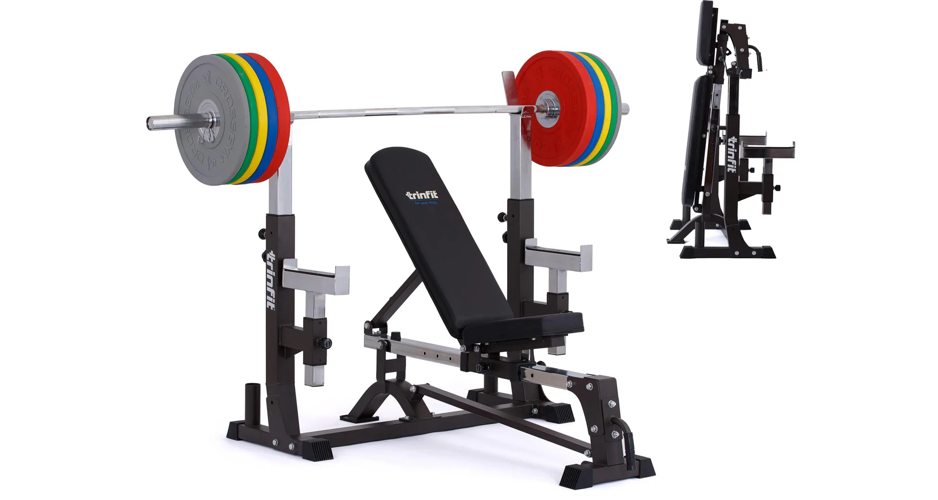 TRINFIT F7 Pro Benchpress má unikátní mechanismus nastavení lavice. Ta je totiž umístěná na kolejnici, která je opatřena 9 otvory, pro 9 poloh lavice. Lavici lze tedy položit do úplné roviny (pro benchpress), ale i do sedu (pro tlaky na ramena s velkou činkou). Pokud chcete procvičit prsa z úhlu, pak vám bude pravděpodobně vyhovovat poloha lavice něco mezi sedem a lehem.