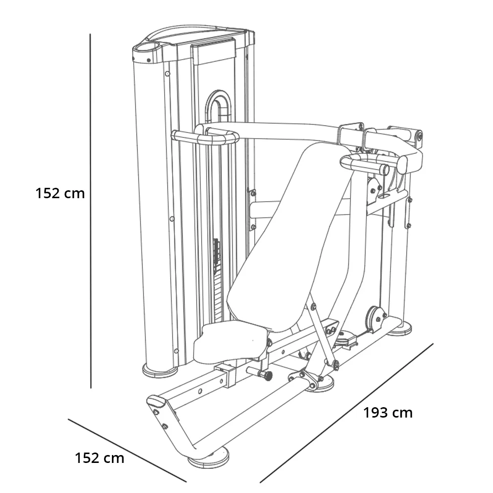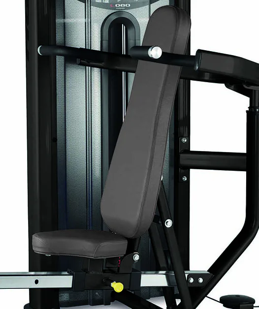 Tento posilovací stroj nabízí více druhů cvičení díky polohovací lavici, ideálního úhlu posilování docílíte polohováním ramen stroje. Můžete cvičit v sedě tlaky na ramena, ale také v leže tlaky na prsa.