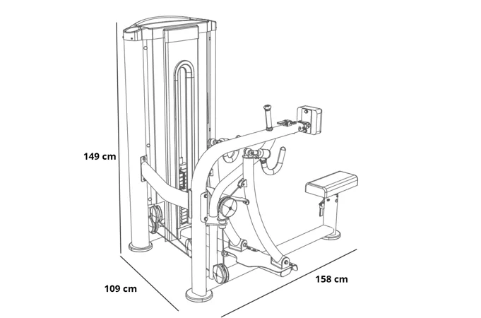 Posilovač zad L290 se rozkládá na malém půdorysu o rozměrech (d x š x v) 158 cm, 109 cm a 149 cm, nezabere vám tedy moc prostoru a stále zůstane dostatek místa i na další stroje.