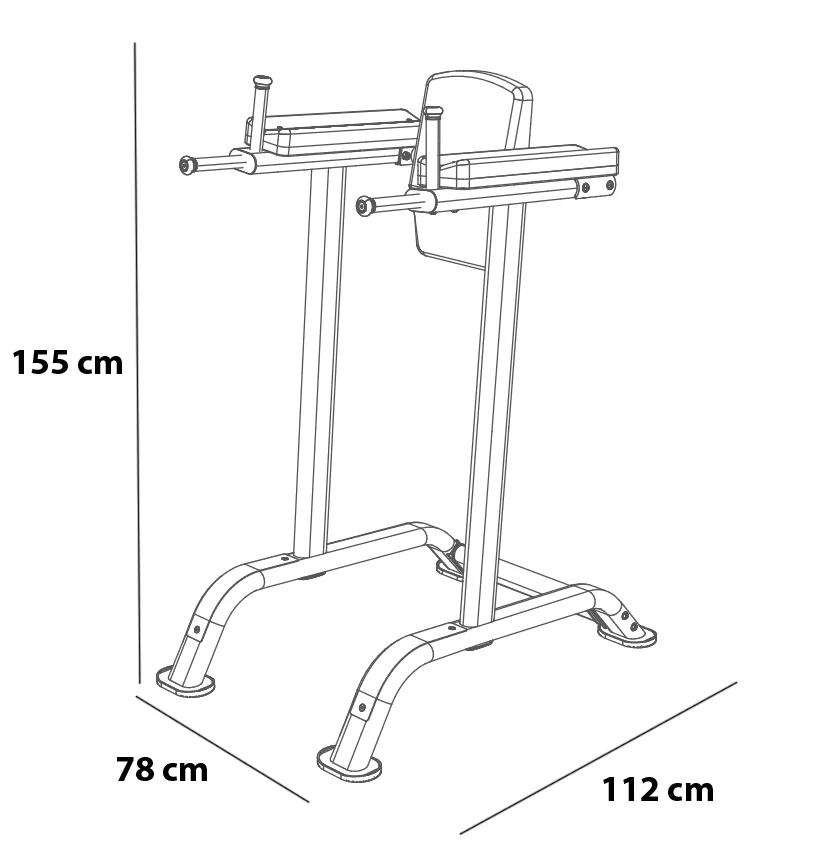 Bradla BH Fitness L800 se rozkládají na půdorysu o rozměrech (d x š x v) 112 cm, 78 cm a 155 cm, nezaberou vám tedy moc prostoru a stále zůstane dostatek místa i na další stroje.