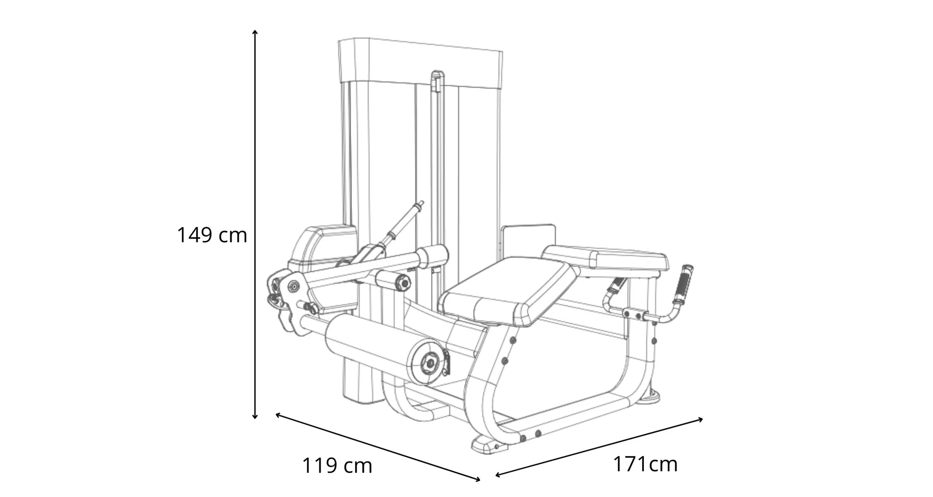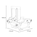 Posilovač stehen Movemia M030 se rozkládá na půdorysu o rozměrech (d x š x v) 171 cm, 119 cm a 149 cm, nezabere vám tedy moc prostoru a stále zůstane dostatek místa i na další stroje.