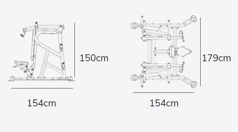 Posilovač ramen PL090 se rozkládá na půdorysu o rozměrech (d x š x v) 164 cm, 159 cm a 149 cm, nezabere vám moc prostoru a stále zůstane dostatek místa i na další stroje.