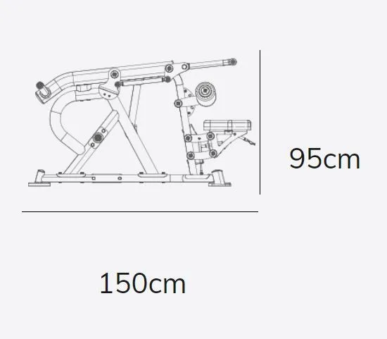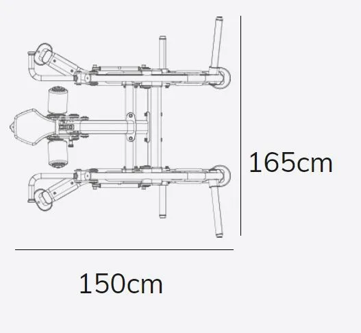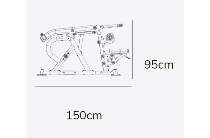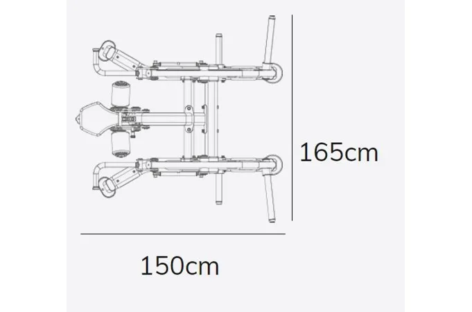 Posilovač prsou a tricepsů L150 se rozkládá na malém půdorysu o rozměrech (d x š x v) 164 cm, 114 cm a 149 cm, nezabere vám tedy moc prostoru a stále zůstane dostatek místa i na další stroje.