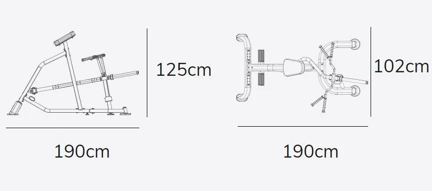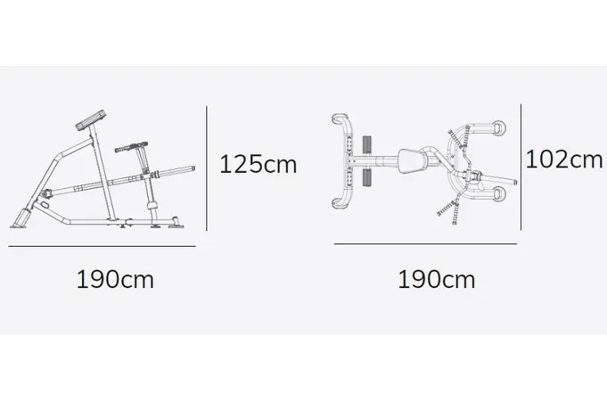 Posilovač zad PL290 se rozkládá na malém půdorysu o rozměrech (d x š x v) 190 cm, 102 cm a 125 cm, nezabere vám tedy moc prostoru a stále zůstane dostatek místa i na další stroje.
