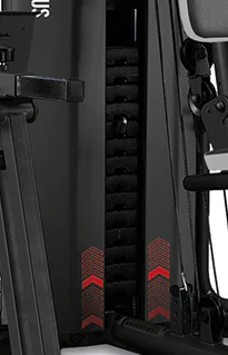 Kladkový systém je osazen ložisky a ocelová lanka jsou potaženy speciálním potahem proti opotřebení a pro dlouhou životnost. Převodový systém disponuje pevnými ocelovými lanky s excentrickým náběhem. Všechny kladky jsou osázeny kvalitními průmyslovými ložisky s mechanismem pro dopínání. Součástí věže jsou i polohovací adaptéry pro předkopy, leg press a také bradla s opěrkou na přednožování.