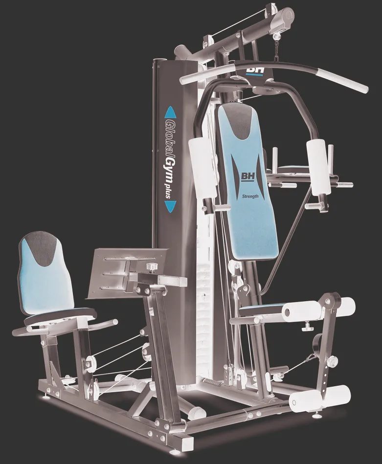 BH FITNESS GLOBAL GYM Plus je skvělá univerzální posilovací věž určena pro domácí kondiční trénink. Možnosti a rozsah cviků uspokojí muže i ženy, procvičíte celé tělo na jediném stroji a zároveň nabízí stabilní základnu, široký rozsah zátěže a samostatný legpress.