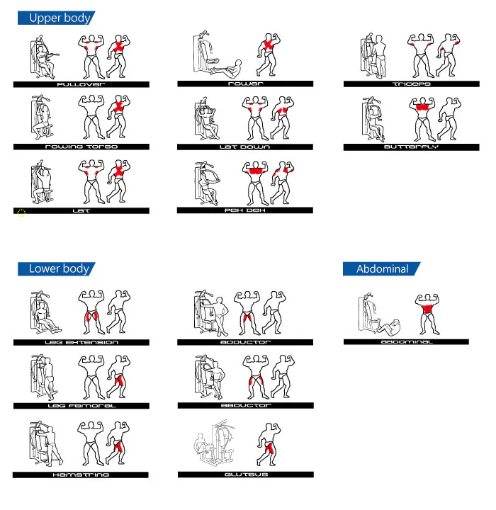 Kladkový systém je osazen ložisky a ocelová lanka jsou potaženy speciálním potahem proti opotřebení a pro dlouhou životnost. Převodový systém disponuje pevnými ocelovými lanky s excentrickým náběhem.Všechny kladky jsou osázeny kvalitními průmyslovými ložisky s mechanismem pro dopínání. Součástí věže jsou i polohovací adaptéry pro předkopy, leg press a také bradla s opěrkou na přednožování.