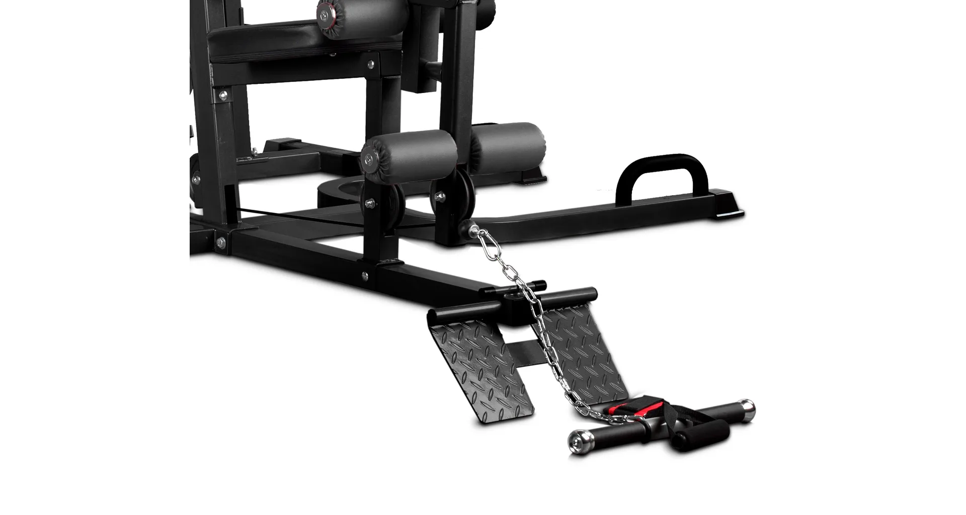Výhodou je masivní konstrukce s vysokou nosností do 130 kg i stabilní základna a nespočet integrovaných adaptérů jako jsou bradla na tricepsové kliky, integrovaná hrazda, legpress na posilování dolních končetin, či obyčejné bradla na standardní kliky.