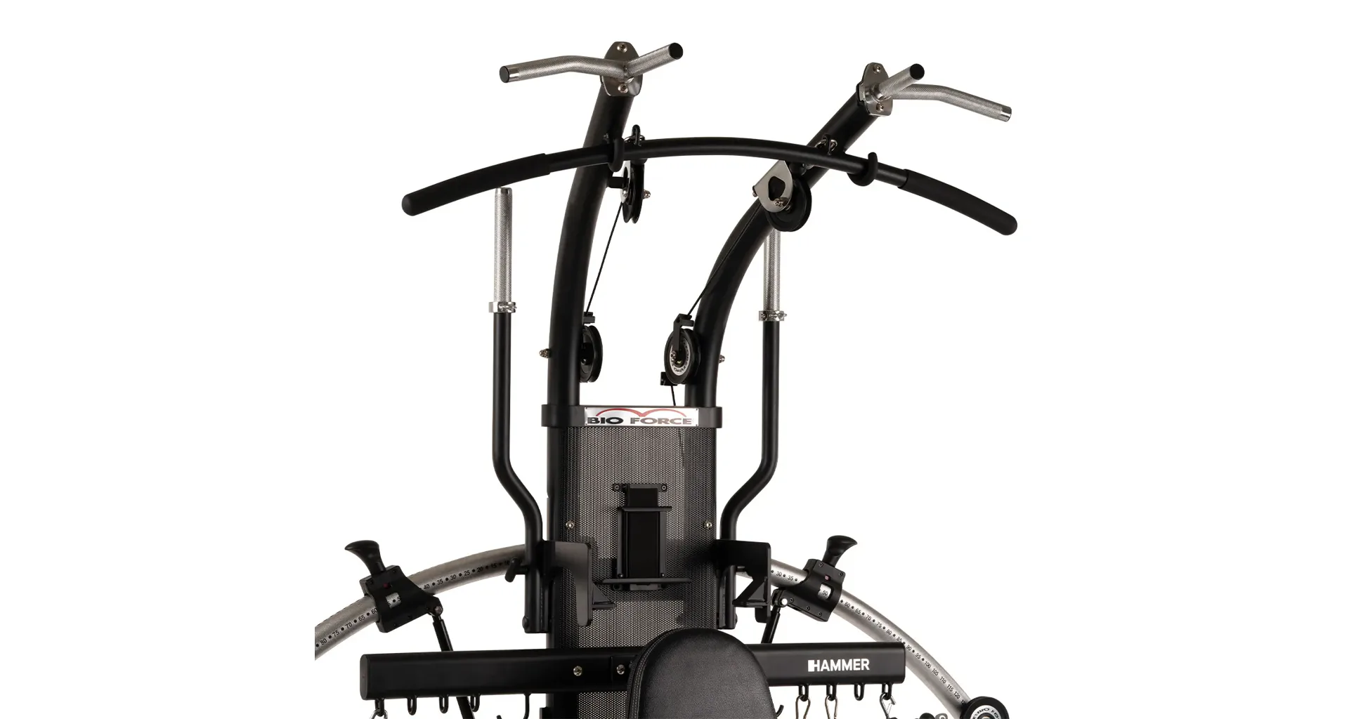Díky široké škále polohovatelných komponent a příslušenství umožňuje HAMMER BIO FORCE EXTREME Pro odcvičit více než 140 různých cviků na celé tělo. Věž je vybavena dipy nebo přednožování, chromovanou hrazdou s různými možnostmi úchopu a ergonomicky nastavitelným sedákem i opěrkou zad, které se snadno přizpůsobí postavě cvičence.