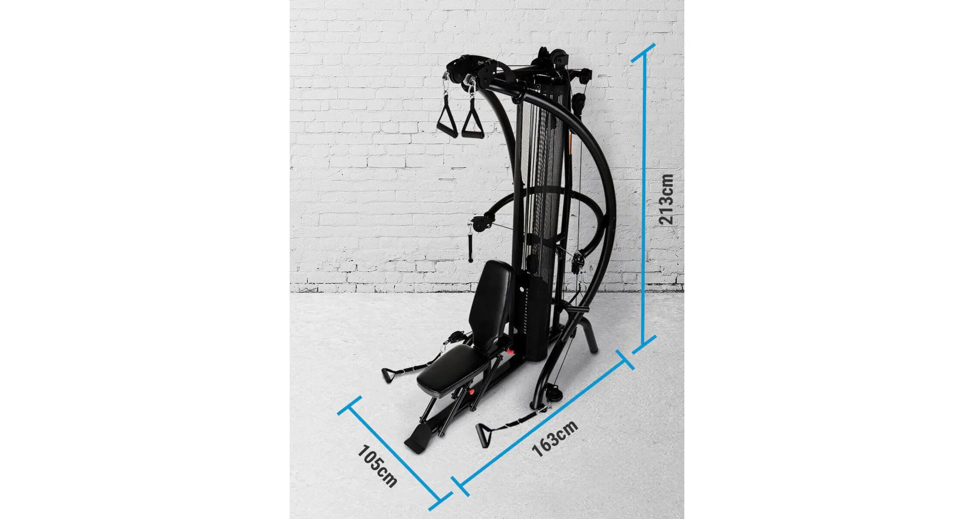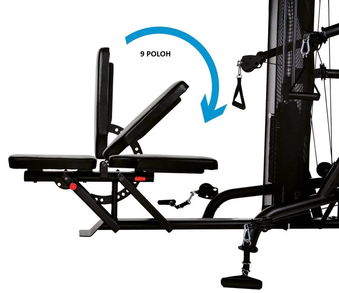 Model FINNLO MAXIMUM Multi-gym M1 zabírá poměrně málo prostoru a navíc nabízí ergonomicky dokonale plynulý systém kladek pro trénink více jak 50 cviků. Všechny kladky jsou plně samostatné a zásobních zátěže váží 75 kg.