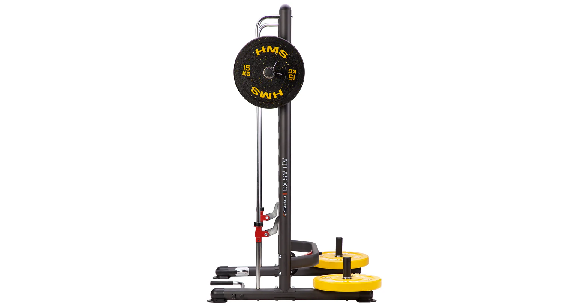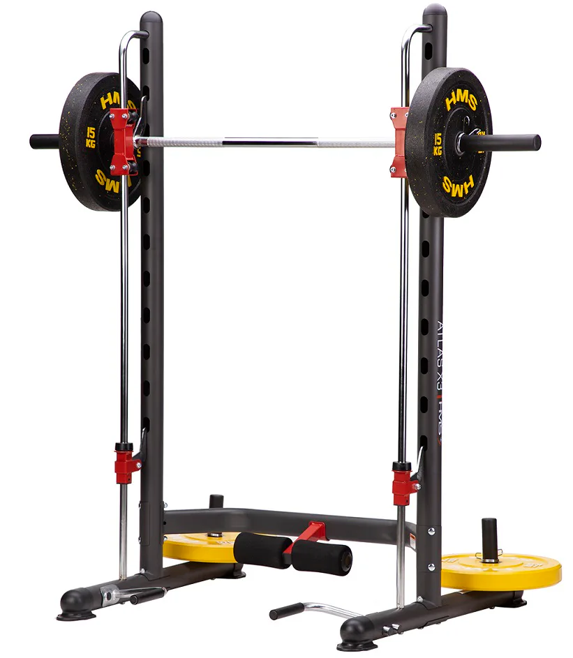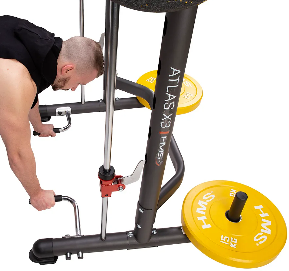 Konstrukce multipressu HMS ATLAS X3 je vyrobena z kvalitní oceli, která umožňuje nosnost až 136 kilogramů. Konstruci navíc doplňuje demontovatelná zarážka nohou pro trénink sed lehů a demontovatelné podpěry na kliky. V balení navíc nalezneme 4 plastové návleky na nakládací a odkládací trny, X3 je tedy kompatibilní jak s běžnými, litinovými kotouči, tak s olympijskými kotouči.